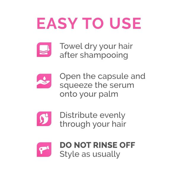 • Easy To Use: No rinse needed . Just apply the hair vitamin serum oils from the capsules which enriched with moroccan macadamia avocado oils after washing, then style or dry your hair as you wish.